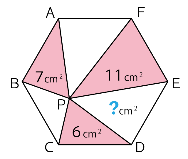 上の図のように、正六角形ABCDEFの内部に点Pをとったところ、